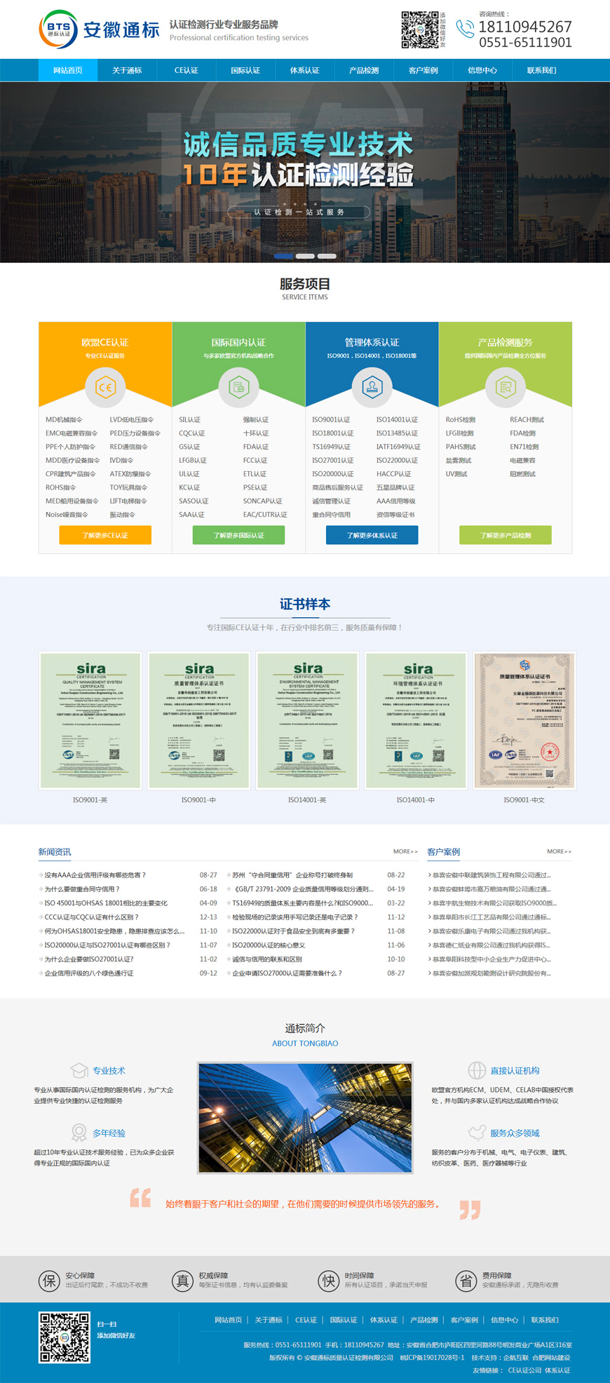 安徽通標質量認證檢測有限公司項目團隊在國際國內認證行業有超過10年專業認證技術服務經驗,擁有一批獲得中國認證認可協會(CCAA)考核,備案注冊的中、高級審核人員,公司項目團隊始終站在客戶的角度,通過細致的調研和嚴謹的分析,為客戶提供精準的、極具商業價值的結構化模型和系統解決方案,并在國內多家不同類型的企業中得到驗證和肯定。已為眾多企業獲得專業正規的國際國內認證,為企業開辟國際市場提供保障,確保順利取得相關認證證書。