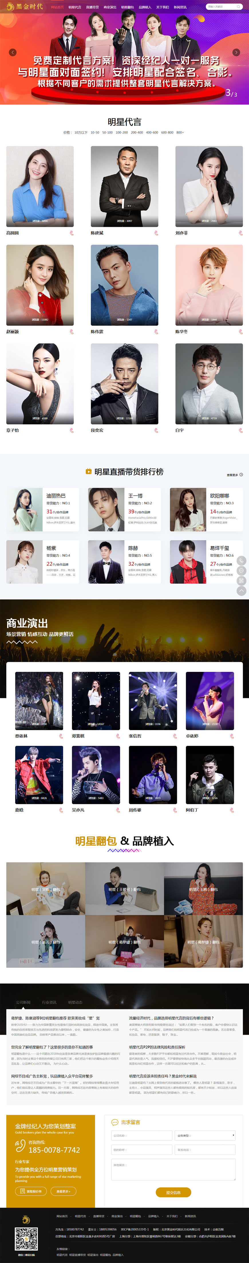 黑金時代娛樂文化有限公司(Black Gold Era,簡稱“BGE”),專注服務于品牌客戶的中國知名全能型娛樂經紀公司,匯集演藝及體育領域強大的資源,有眾多簽約合作明星;匯聚演員、歌手、導演、體育明星、藝術領袖、網絡紅人等多類別領域人才資源;集藝人經紀、藝人包裝、廣告代言、活動演出、公關策劃執行、法律咨詢、數字媒體營銷推廣等多項經紀業務于一體的娛樂公司。