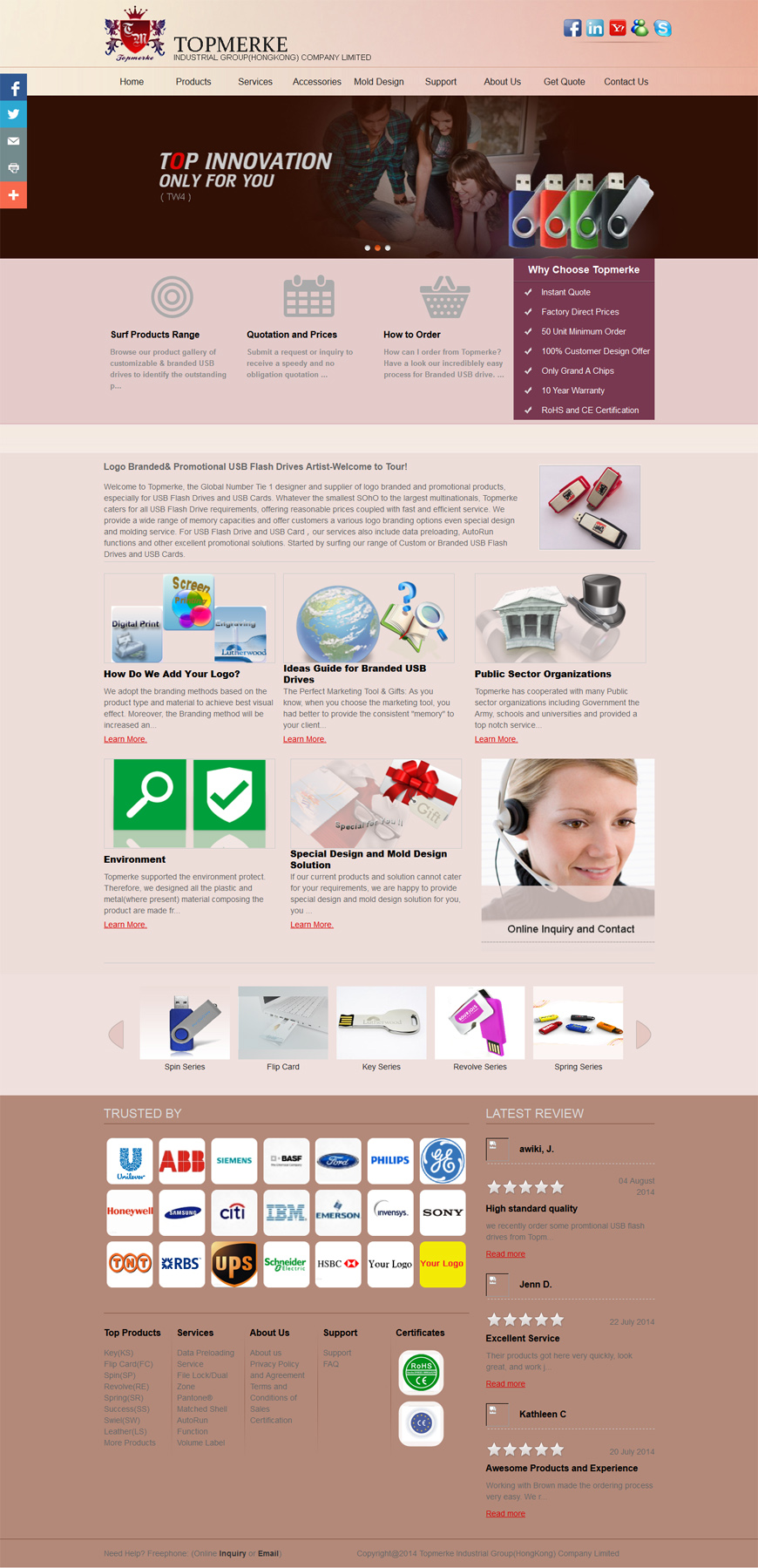 As a professional Branded USB flash drives manufacturer, Topmerke still provides most effective promotional USB products and service for your own in a wide range of clients. Topmerke is a leading manufacturer of USB products and computer peripherals based