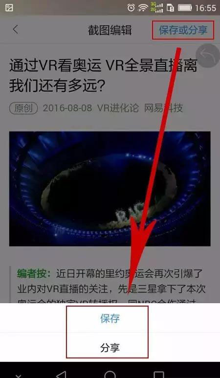 3、我們這里直接選擇【截整頁】,就會調出【保存或分享】按鈕,此時你就可以直接把長圖保存起來,或者直接發送給好友了。