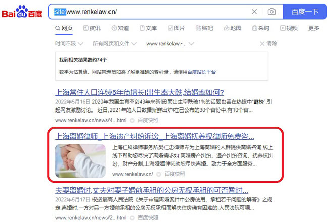 如下圖,該網(wǎng)站site首頁在第二位。但是該網(wǎng)站是沒有降權(quán)的,網(wǎng)站的排名依然是在搜索引擎首頁。