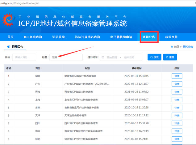 如果網站負責人不能做短信驗證,請登錄工信部官網beian.miit.gov.cn-點擊“備案問題咨詢”-點擊“資料下載”-點擊“備案相關資料”-在頁面左邊找到對應省份的網站備案文檔下載,并下載注銷申請表,填寫表格后需要加蓋公章,連同備案主體的營業執照掃描件,發郵件到我司ICP@gzidc.com辦理注銷網站申請,請備注好注銷網站的域名。如果網站負責人不能做短信驗證,請登錄工信部官網beian.miit.gov.cn-點擊“通知公告”-在“標題”欄輸入“注銷”-在頁面找到對應省份的網站備案文檔下載,填寫表格后需要加蓋公章,連同備案主體的營業執照掃描件,發郵件到我司ICP@gzidc.com辦理注銷網站申請,請備注好注銷網站的域名。(注意:如果注銷申請表聯系人,不是備案登記聯系人,請注銷申請表聯系人需手持本人身份證和營業執照在公司前臺拍攝20秒以內的小視頻,并發送給我司ICP@gzidc.com郵箱存檔。)