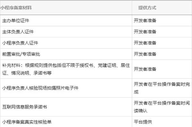 1、小程序備案材料
