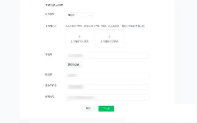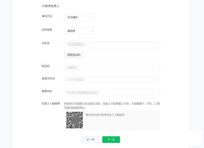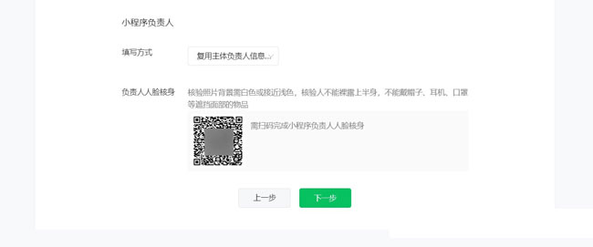 4、小程序負責人信息填寫及人臉核身