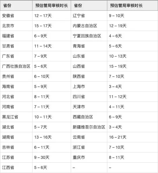 注意:以下關于各地區通信管理局備案時間時間,僅僅是預估,實際審核通過時間可能有所不同,時間僅供參考,實際請以各省管局為準: